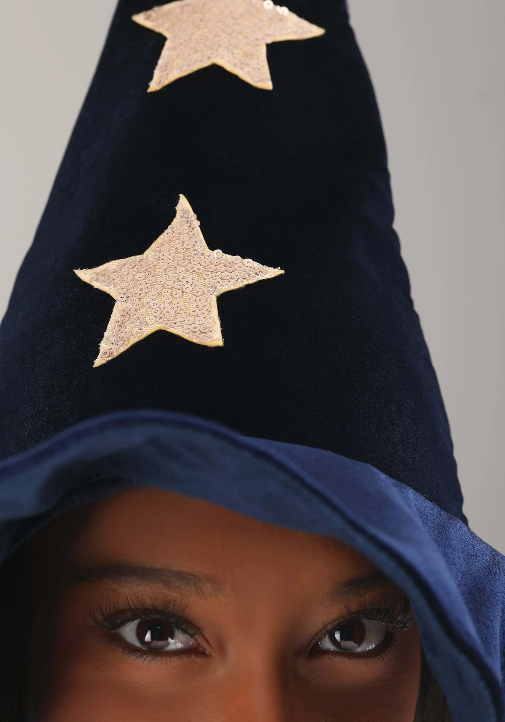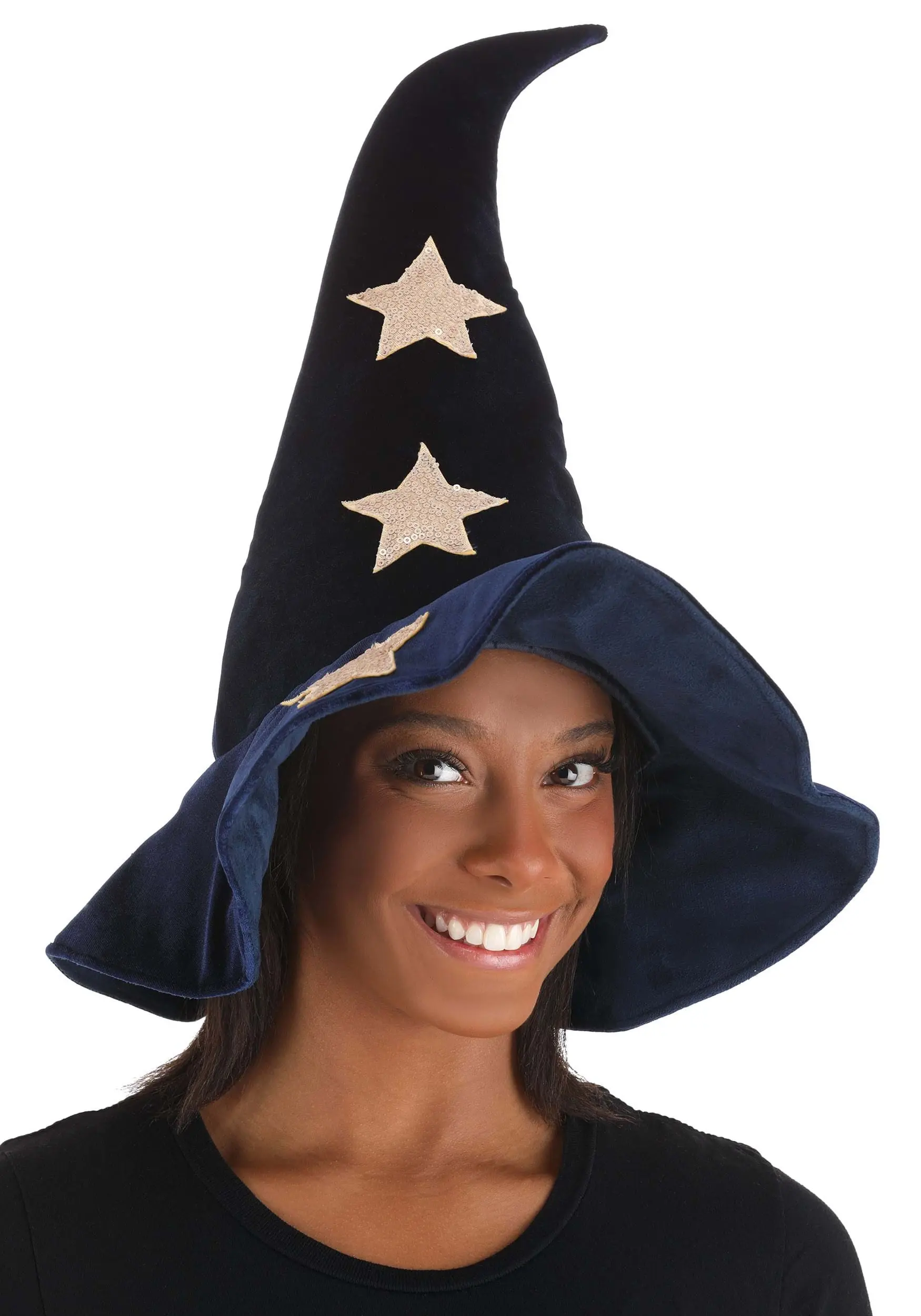 You’ll be ready to practice all kinds of magic when you put on this Velvet Starts Costume Witch Hat! This charming piece is made from soft dark blue fabric and features appliqued starts on the brim and crown. Complete your witchy outfit with this adorable accessory!