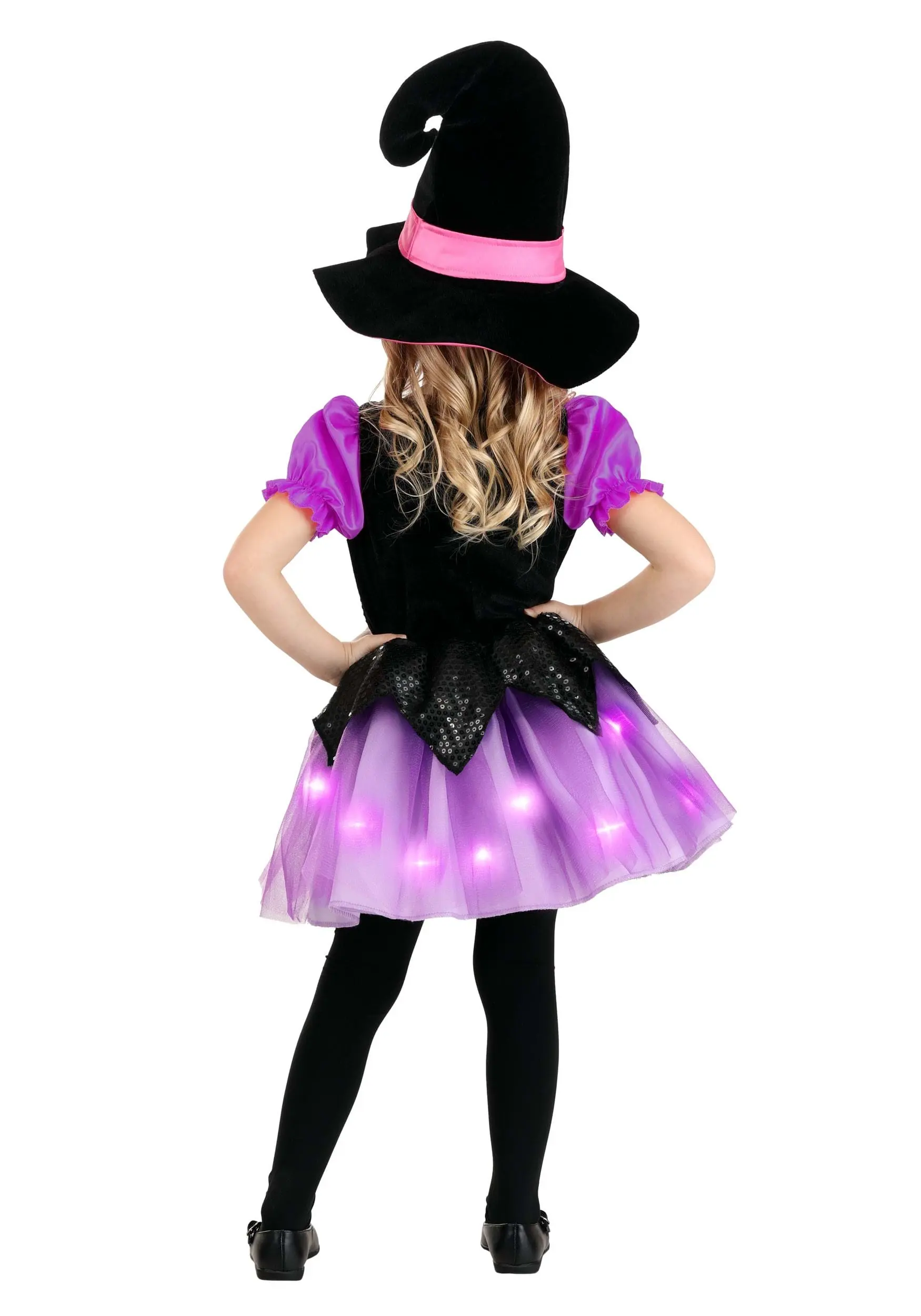 This is an exclusive Girl’s Toddler Pink Light-Up Witch Costume.